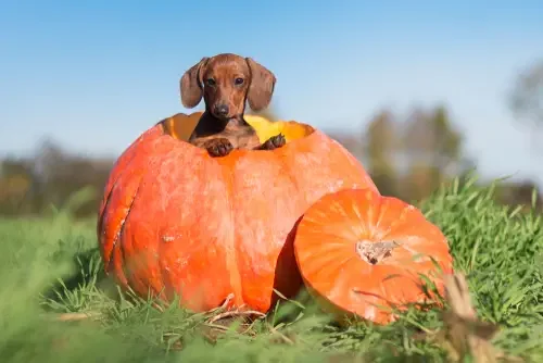 While candy is off-limits for dogs, that does not mean your puppy has to miss out on the fun. Put together a basket of puppy-safe treats and toys that your dog can enjoy on Halloween night. A chew toy, soft squeaker, or pumpkin-flavored dog biscuit makes the evening feel special for your pet.